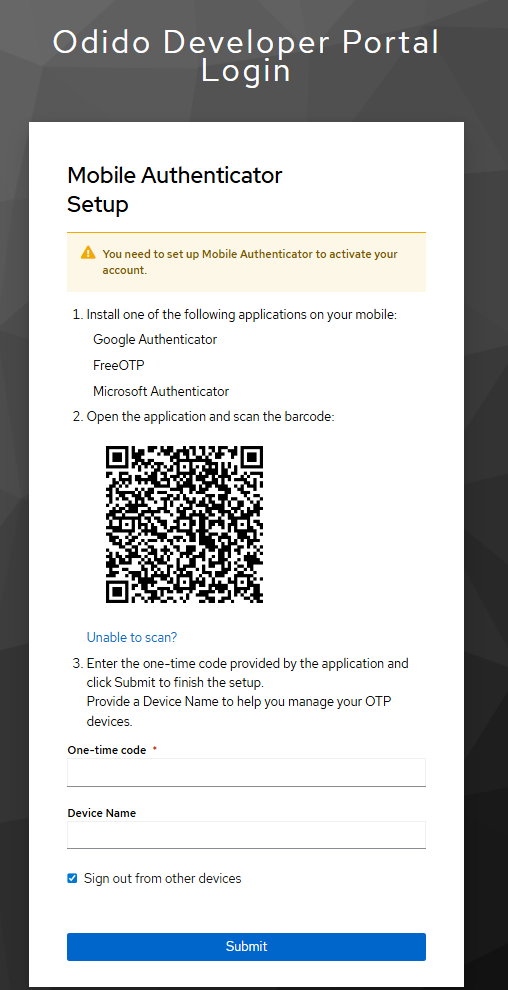 Important: Use the same email address shared with ODIDO during partner onboarding. For this demo we use demouser@test.com